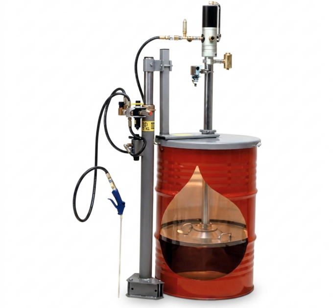 Na rozdíl od jiných čerpadel je naše sudové čerpadlo umístěno přímo na horní straně sledující desky a sleduje tak klesající hladinu mazacího tuku.