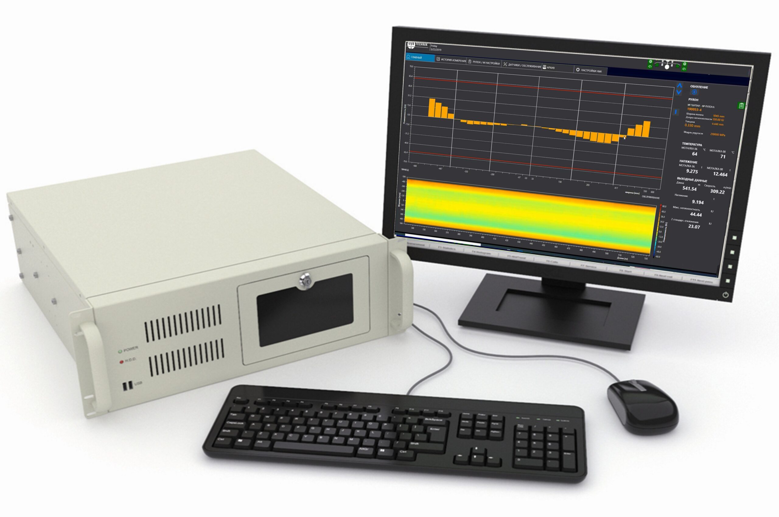Die Planheitsmessrolle ist für die Bewertung der Ebenheit von Metallbändern in Kaltwalzwerken bestimmt. Das Prinzip der Planheitsbewertung basiert auf der Messung der Druckkräfte eines Metallbandes in den mehreren Zonen des Messwalzens. Über eine Zwischenwalze wird das zu messende Band mit einem konstanten Winkel von 5° bis 10° auf die Messwalze geführt. Eine Anzeigegrafik zeigt die Verteilung von Ebenheit und Zugspannung über die Breite des Bandes mittels Säulendiagrammen und deren Verlauf über die Länge des gemessenen Bandes.