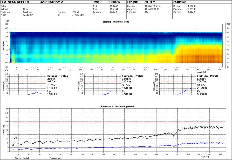 • отображение плоскостности в I (единица измерения плоскостности ленты)